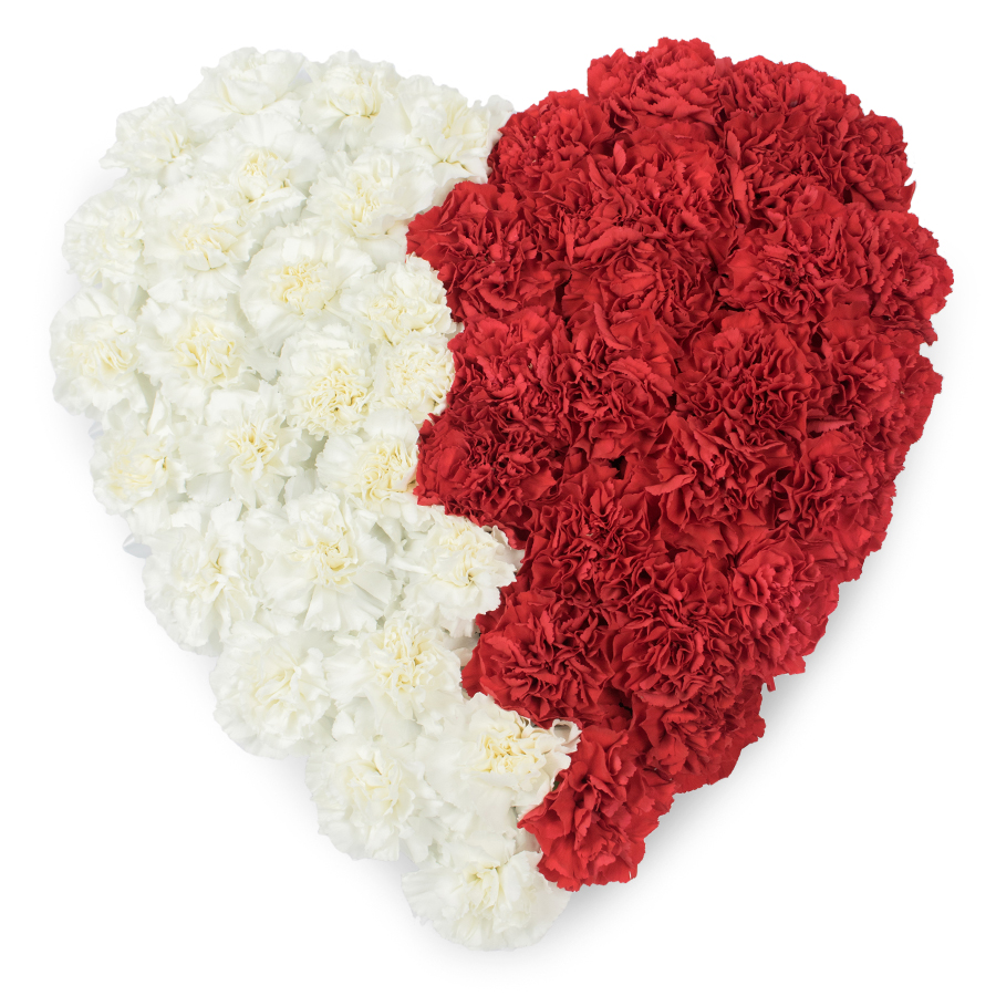 Express your deepest sympathies with our Sympathy Heart Bouquet, featuring a beautiful mix of white and red carnations. Each bloom is hand-selected to ensure the highest quality and freshness.